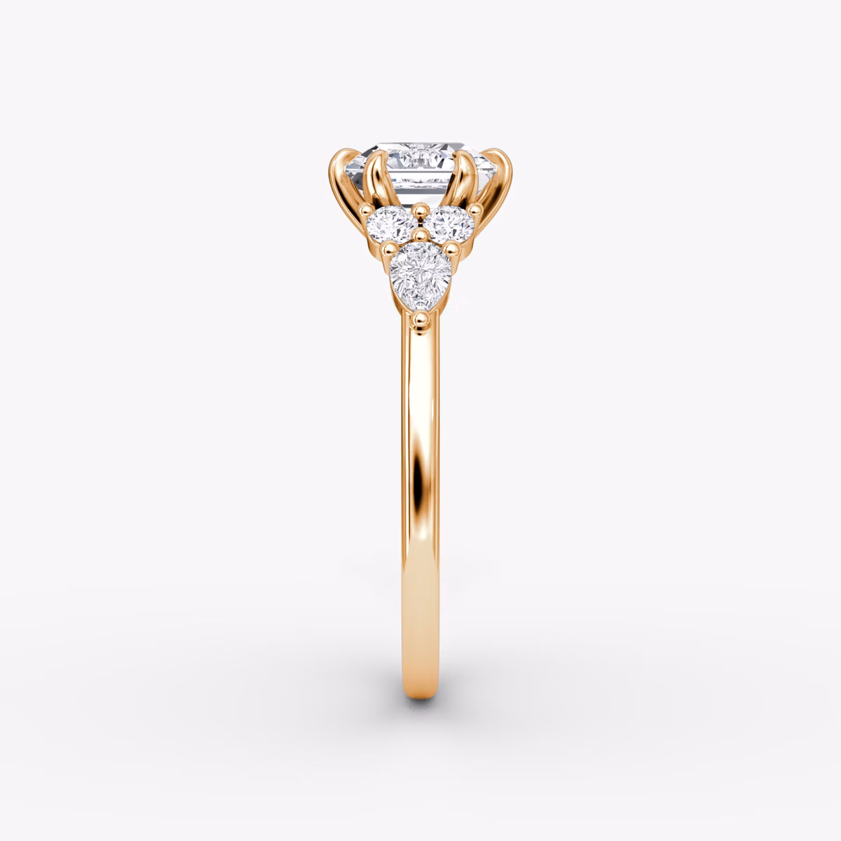 The Pear Cluster Heirloom solitaire in 14k rose gold with a asscher diamond