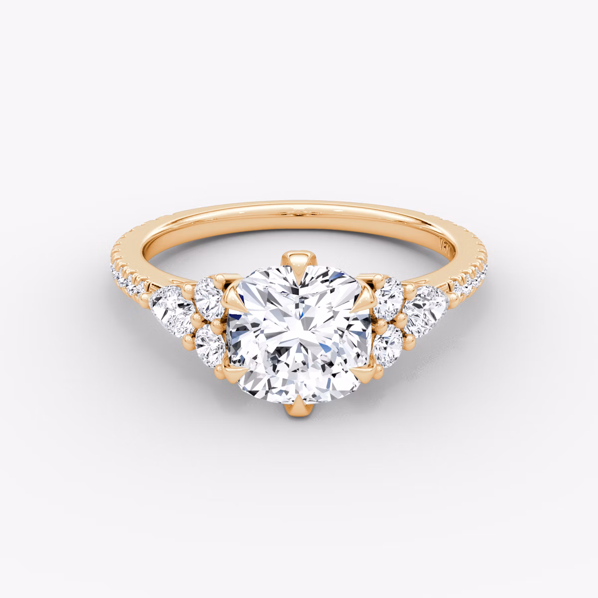 The Pear Cluster Heirloom solitaire in 14k rose gold with a cushion diamond