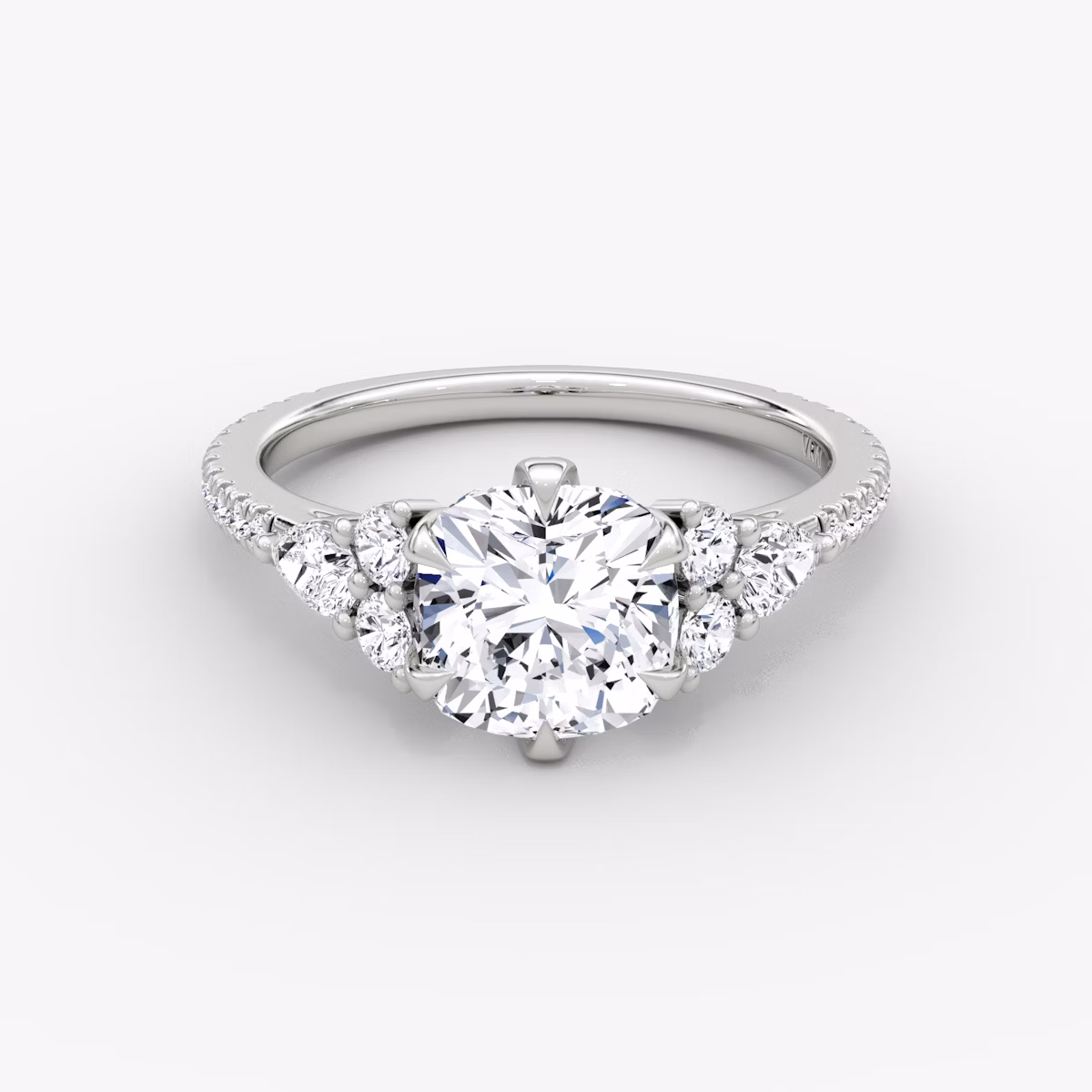 The Pear Cluster Heirloom solitaire in 18k white gold with a cushion diamond