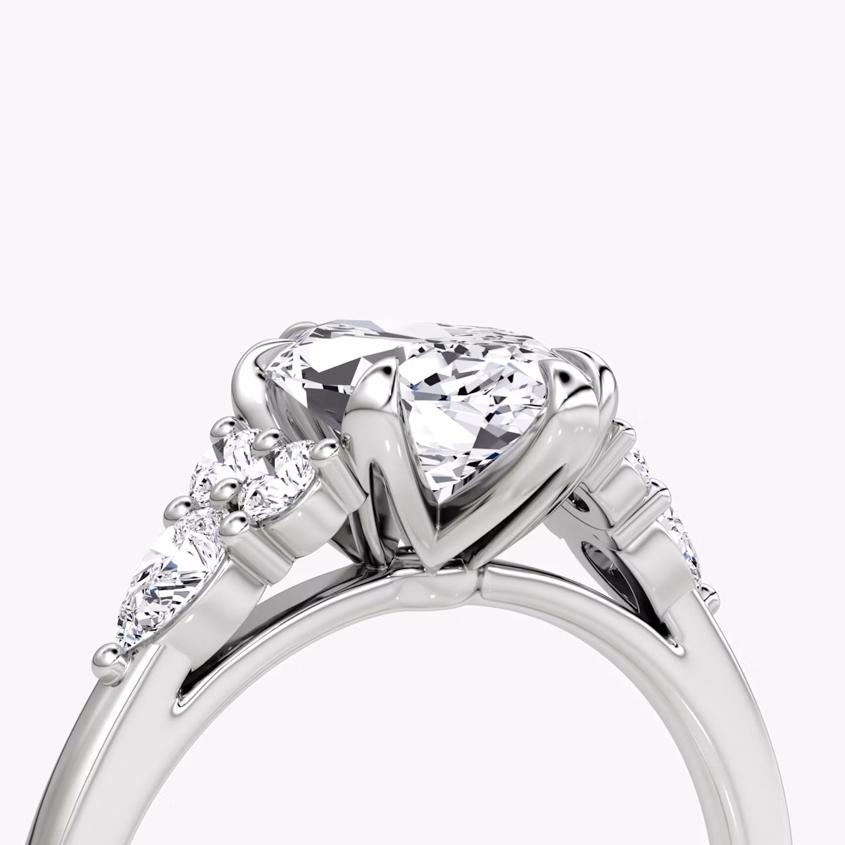 The Pear Cluster Heirloom solitaire in 18k white gold with a marquise diamond