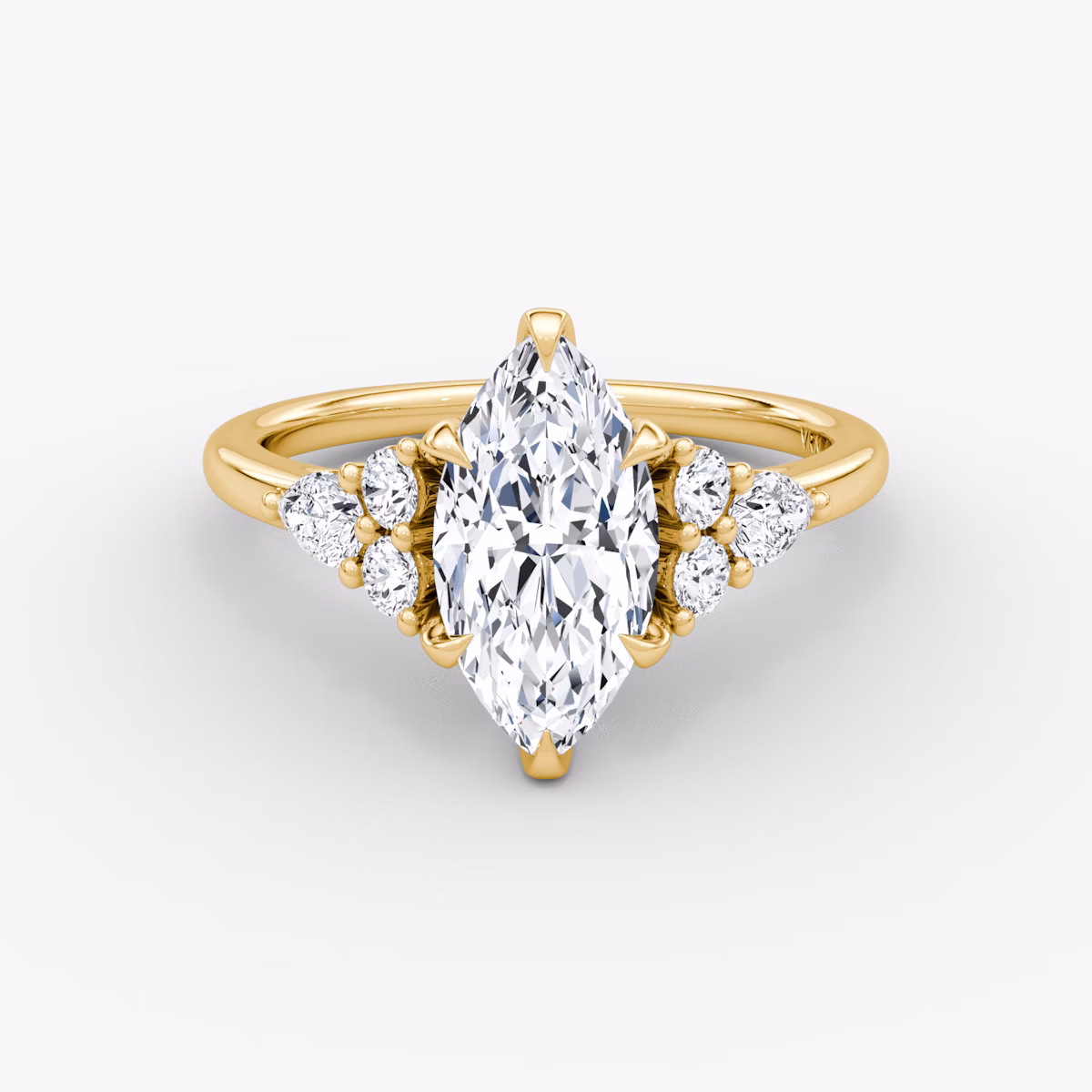 The Pear Cluster Heirloom solitaire in 18k yellow gold with a marquise diamond