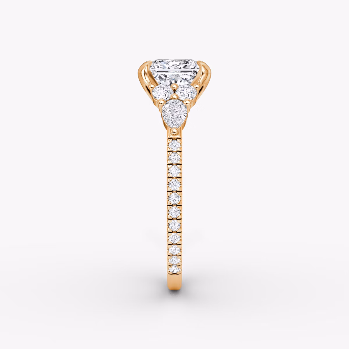 The Pear Cluster Heirloom solitaire in 14k rose gold with a princess diamond