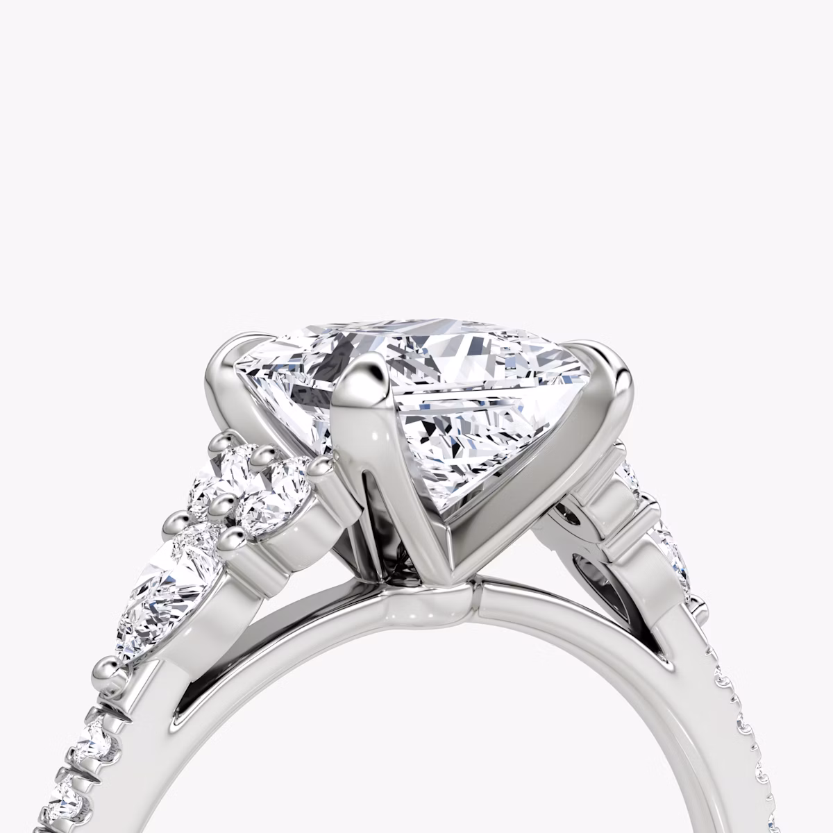 The Pear Cluster Heirloom solitaire in 18k white gold with a princess diamond