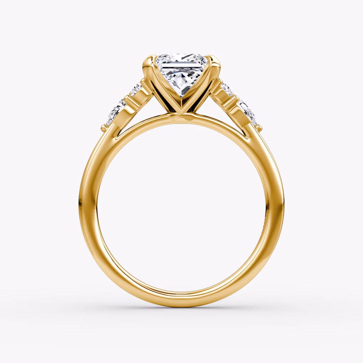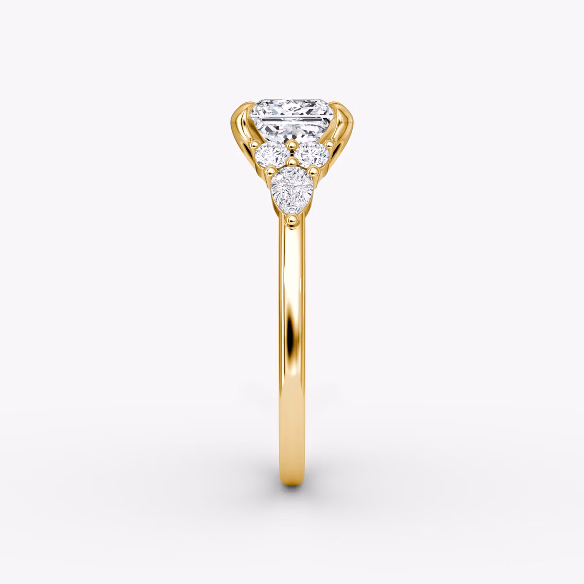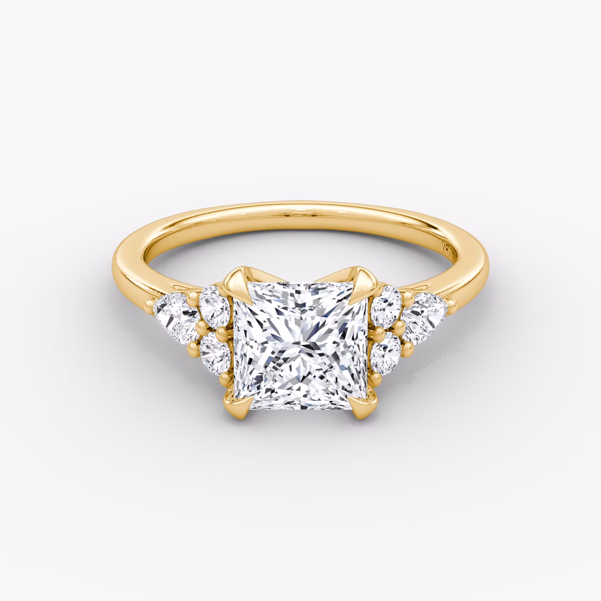 The Pear Cluster Heirloom solitaire in 18k yellow gold with a princess diamond
