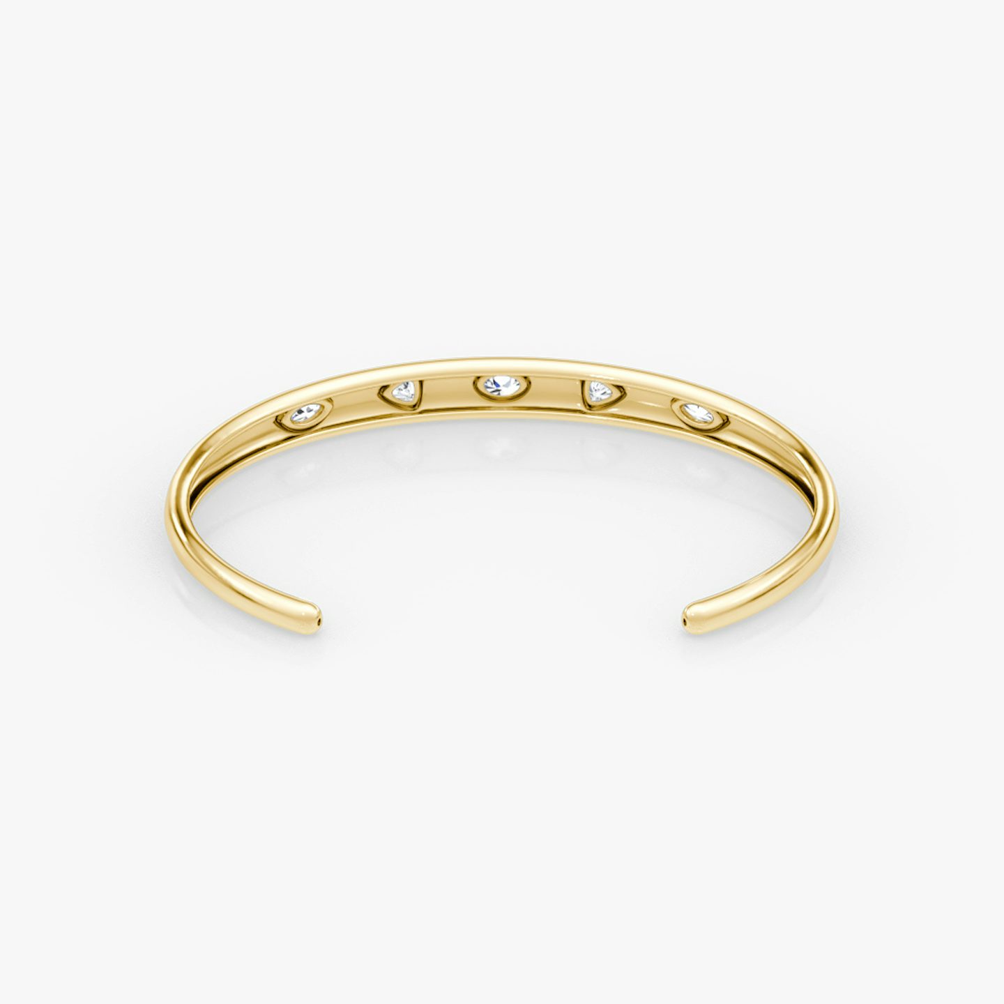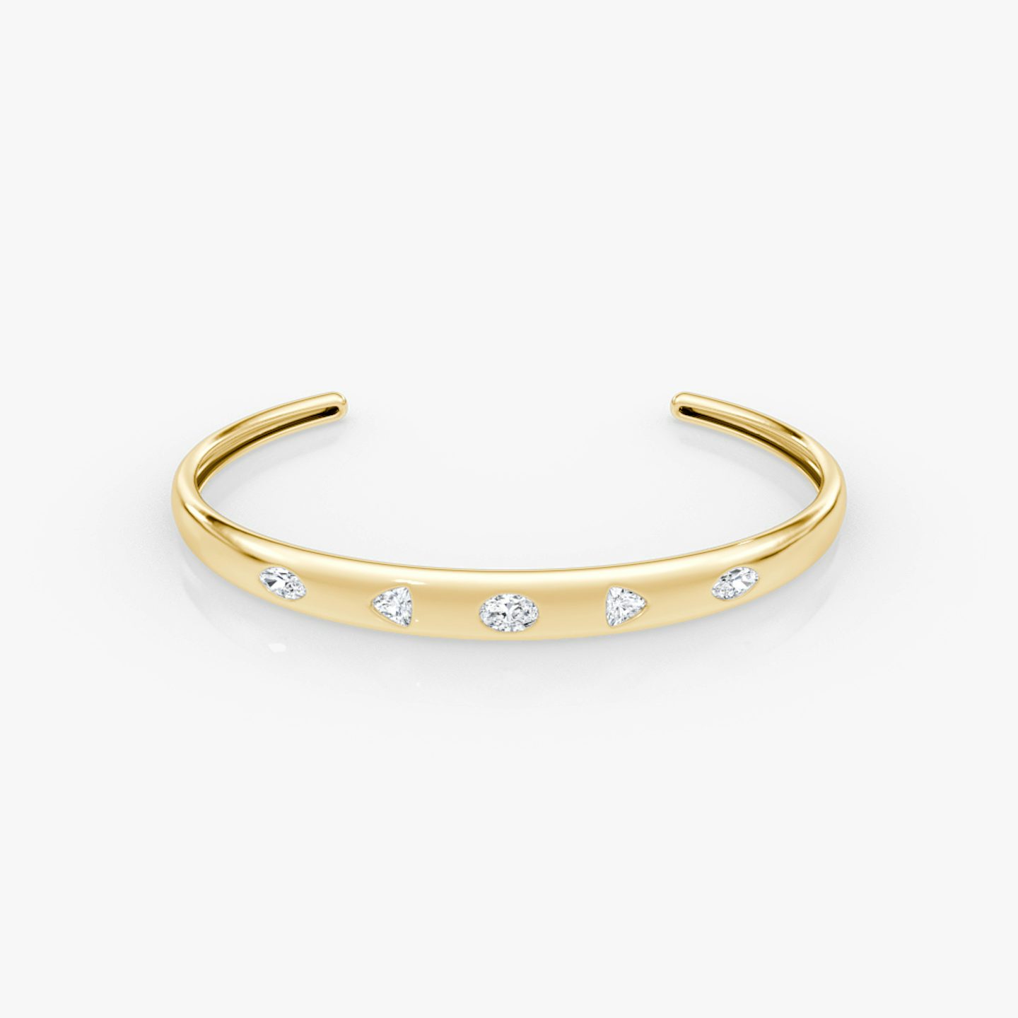 The petite and vintage-inspired VRAI x Petra & Meehan Mixed Shape Dome Bangle will add confident style to any attire. The slim 14k solid gold bracelet showcases five inlay set VRAI created diamonds in three distinctive shapes. Light, versatile, and enigmatic, wear it stacked or as a standalone piece.
